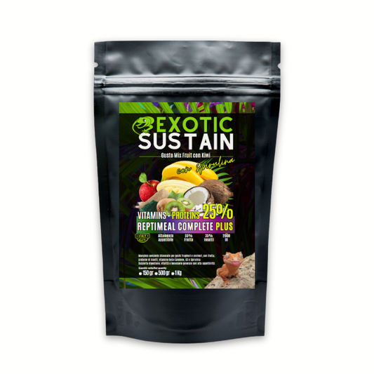 ReptiMeal Complete PLUS: VITAMINS + PROTEINS 25% – MixFruit con Kiwi e Spirulina